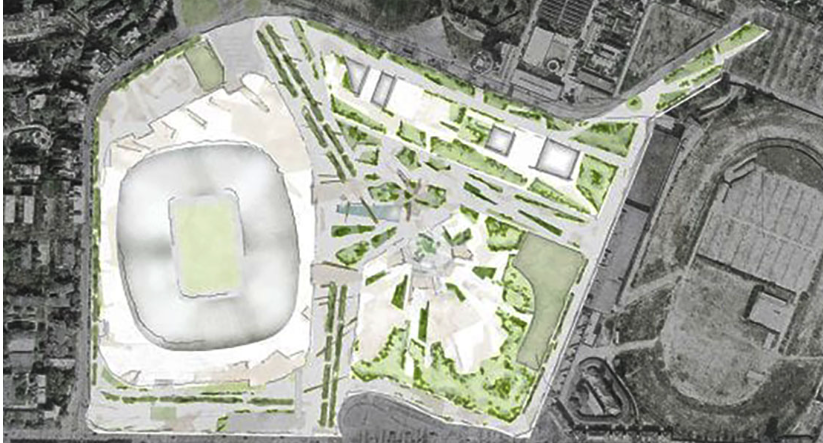 Il progetto sarà inserito in un parco verde e offrirà strutture sportive, aree ristoro, negozi e servizi, accessibili a tifosi e cittadini.