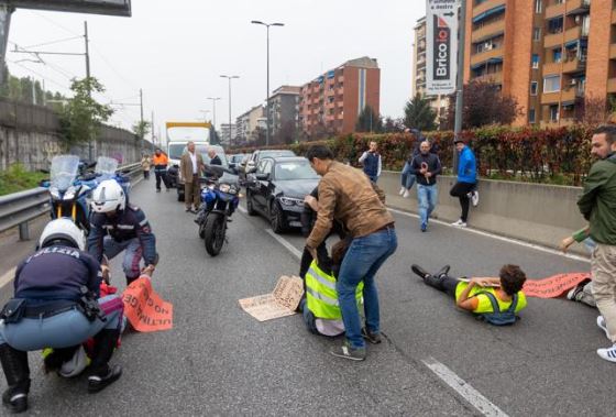 Traffico bloccato in via Palmanova dagli ambientalisti attivi di Ultima Generazione